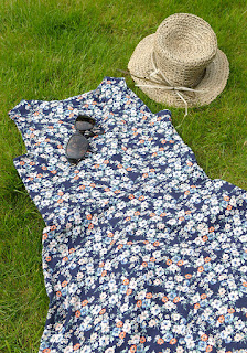 Eg likar godt mønster med små blomar på, det gir meg den rette sommarkjensla. Så, då eg kom over det mørkeblå stoffet i herleg jerseystretch med masse små blomar på, visste eg med ein gong at det måtte bli ein sommarkjole til meg sjølv ut av det. Både stoff og kjolemønster er kjøpt på Stoff & Stil.